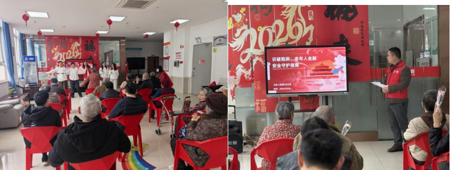 活动伊始,养老院内歌声飞扬,老人们与公司志愿者们欢聚一堂,用经典老歌传递节日的喜悦。然而,这场活动的“重头戏”并非只有歌声,公司紧扣“3.15”金融消保主题,围绕老年人最关心的“如何防范金融诈骗”“如何保护个人信息”等热点问题,通过金融消保互动问答,结合真实案例,深入浅出地为现场老人讲解。老人们听得认真,答得踊跃,现场气氛热烈。通过一问一答,老人们在轻松愉快的氛围中提升了金融风险防范意识,增强了自我保护能力。活动现场,公司还为老人们送上了点心和鲜花,传递节日的祝福与关怀。